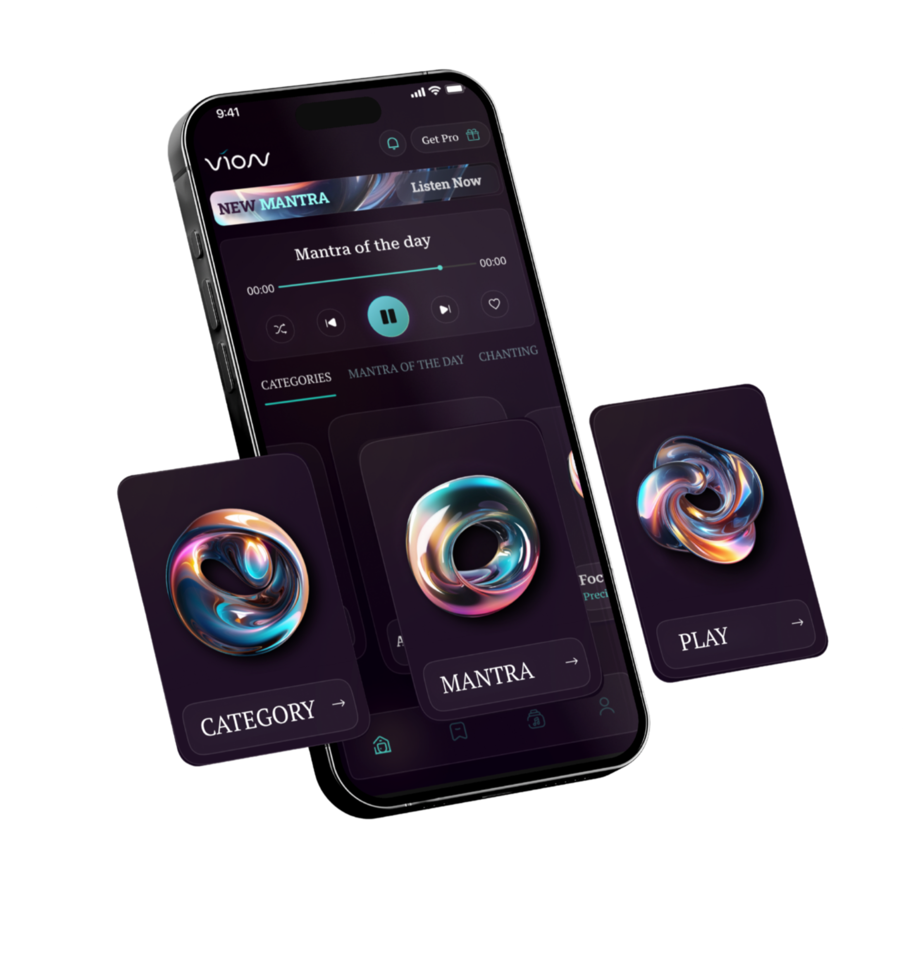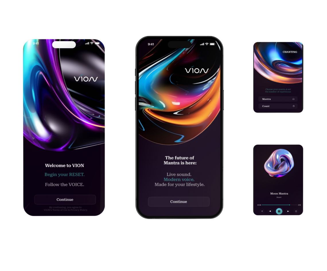VION is the first mantra app crafted around a signature low voice, soft choir harmonies, live instruments, & immersive sound design to support your nervous system & bring calm to your high-performing mind.